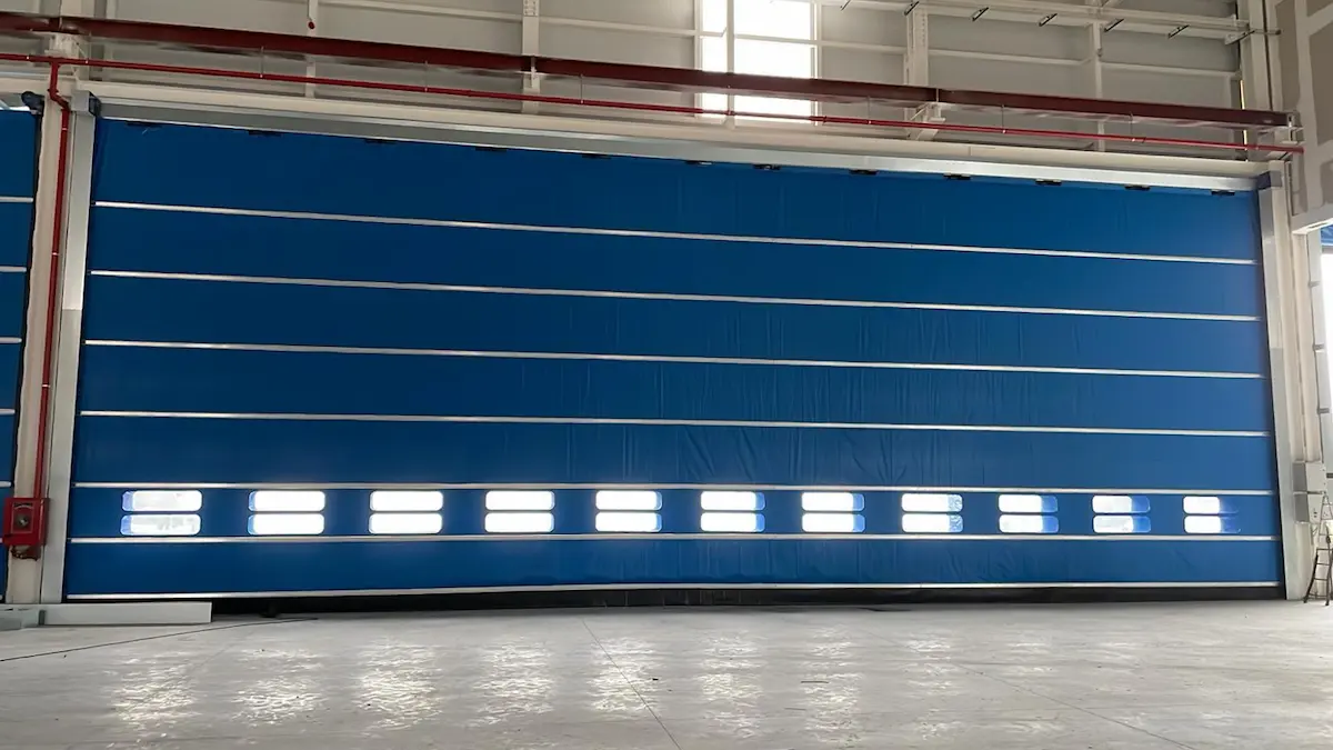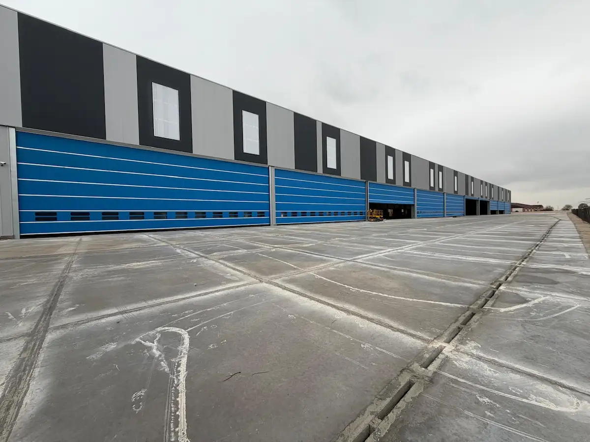 Uno de los requisitos determinantes del proyecto ha sido la resistencia al viento clase 4, una clasificación que garantiza el correcto funcionamiento de las puertas incluso en condiciones de fuertes corrientes de aire y presión diferencial. Esta característica resulta especialmente relevante en instalaciones logísticas y naves de gran volumen, donde la apertura frecuente de grandes huecos puede generar importantes tensiones sobre el sistema de cierre. La solución de doble lona aporta una mayor robustez, mejora el comportamiento frente al viento y reduce el riesgo de deformaciones o paradas operativas.