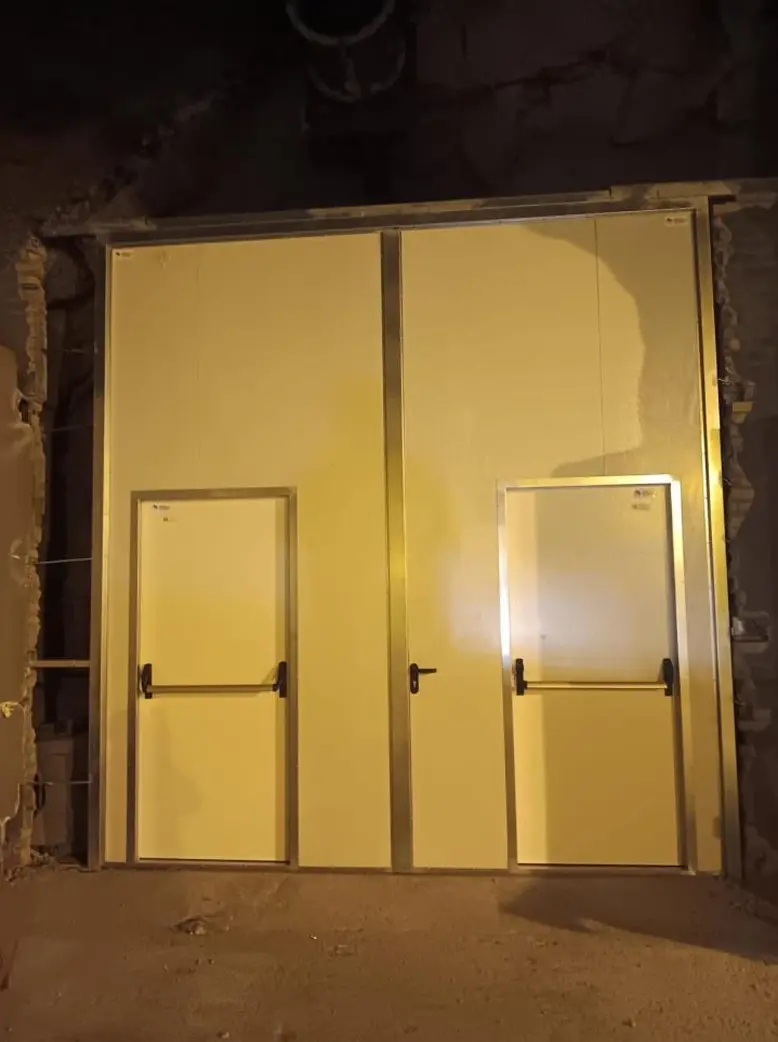 Proyecto realizado en Cantabria consistente en la instalación de 2 puertas abatibles con resistencia al fuego EI120, incorporando dos puertas peatonales integradas en las hojas principales.