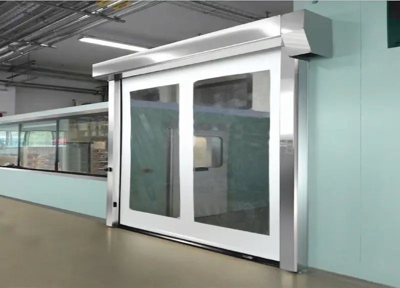 Su sistema de lona flexible con cremallera lateral permite un cierre hermético y una estanqueidad elevada, manteniendo las condiciones térmicas entre espacios. Incorpora motorización con variador de frecuencia y control digital, alcanzando velocidades de apertura de hasta 2,2 m/s, junto a dispositivos de seguridad integrados como fotocélulas y cortinas ópticas.