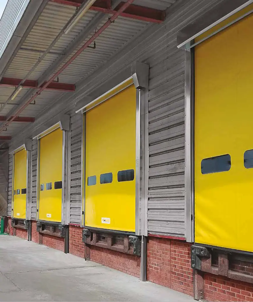 Puerta rápida enrollable autorreparable diseñada para entornos industriales con alto tránsito, que combina velocidad, seguridad y eficiencia energética.