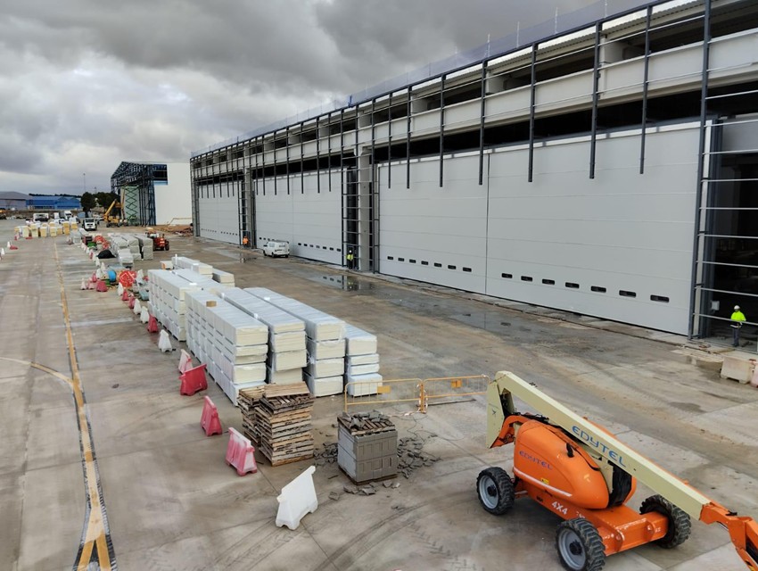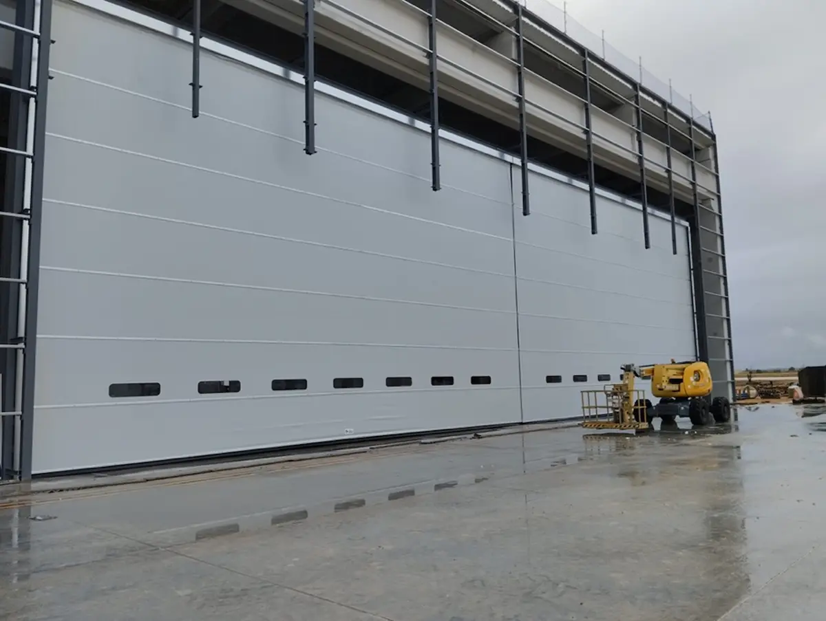 El proyecto ha requerido la implantación de puertas de 34.000 x 10.000 mm, unas dimensiones fuera de estándar que implican un alto nivel de complejidad tanto en el diseño como en la ejecución. Para garantizar un funcionamiento óptimo y seguro, se ha optado por puertas rápidas de doble lona, una solución especialmente indicada para grandes huecos industriales, ya que mejora significativamente la estabilidad estructural, la resistencia al viento y la durabilidad del conjunto frente a un uso intensivo.